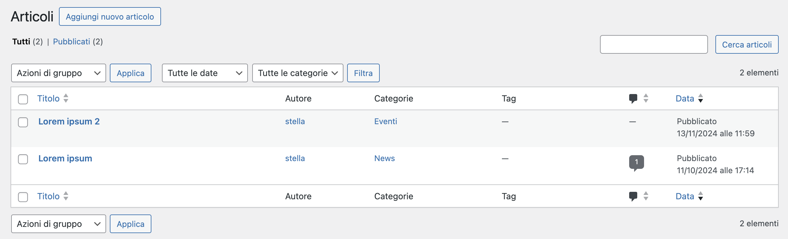 - Categorie: gli articoli possono essere assegnati a diverse categorie, che aiutano a organizzare i contenuti e a strutturare il sito.