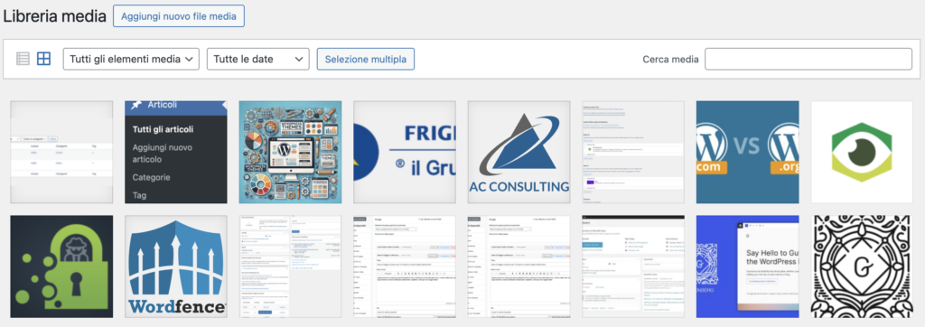 La Libreria Media di WordPress è l’area in cui vengono gestiti tutti i file multimediali caricati sul sito. Questa sezione permette di caricare, visualizzare, organizzare, modificare e inserire file multimediali nei contenuti del sito, come articoli e pagine.