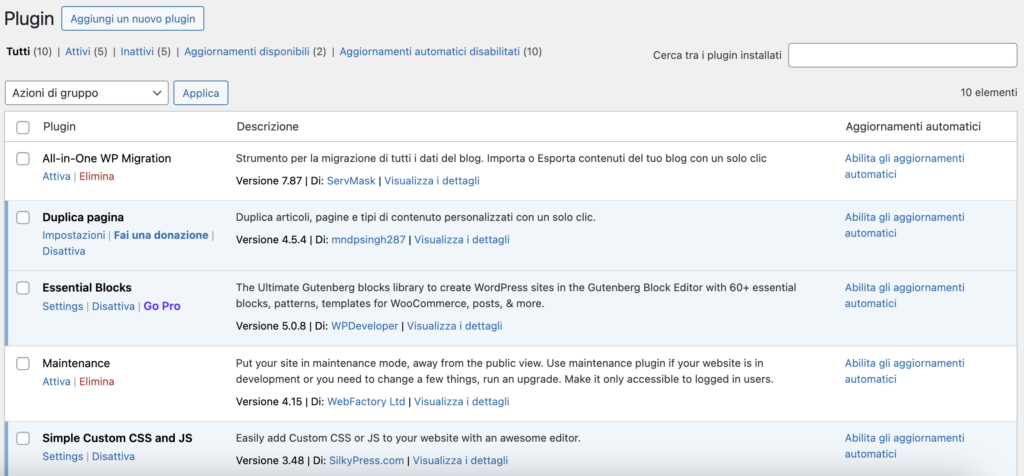 - È importante mantenere i plugin aggiornati per garantire la sicurezza e la compatibilità con la versione più recente di WordPress.