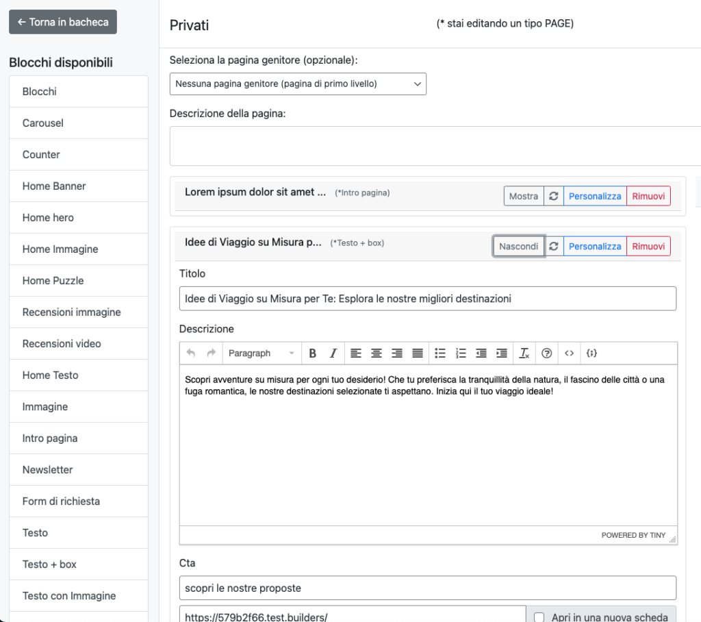 Questo editor consente di creare e gestire contenuti visivi in modo intuitivo, utilizzando “blocchi” per costruire pagine e articoli.